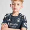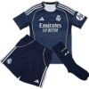 The 2025-26 Real Madrid Away Kids Kit provides a scaled-down version of the team’s away shirt and shorts. Featuring an alternate color palette distinct from the home white, the kit is completed with the Real Madrid crest, reinforcing the identity of one of Spain’s most recognized clubs.