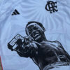 At the heart of the jersey lies an unforgettable image of Zé Pequeno, the notorious character from City of God, holding a gun in his infamous pose. The striking image of Zé Pequeno is seamlessly integrated into the middle of the jersey, expertly blending the world of Brazilian football with the gritty reality of the film. His powerful and rebellious presence adds a cinematic edge to the design, making it a must-have for fans of both Flamengo and Brazilian cinema.