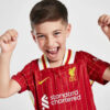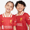 Attention to detail is paramount in the 2024/25 Liverpool home jersey for kids. The collar and sleeve cuffs feature refined accents that mirror the adult version, giving it a polished look while ensuring durability for active use. The jersey also includes additional design elements on the sleeves and back that add a unique flair. This jersey is not just sportswear; it’s a symbol of Liverpool FC’s legacy, a celebration of its storied history, and a way for young fans to show their support and connection to the club.